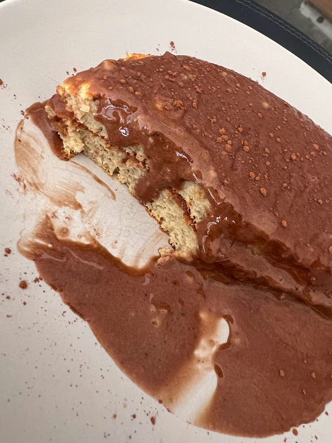 10g de chocolate 85% cacau ou gostas de chocolate (para derreter sobre as panqueca);